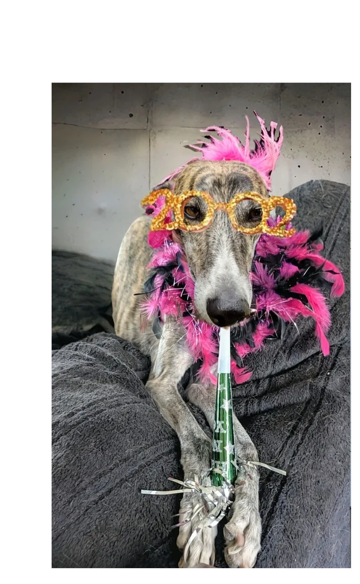 greyhound mix who was rescued from a hoarding situation. She was adopted by Gracie's son, Andy, his wife, Lori, and their young daughters Lisa and Caryn.